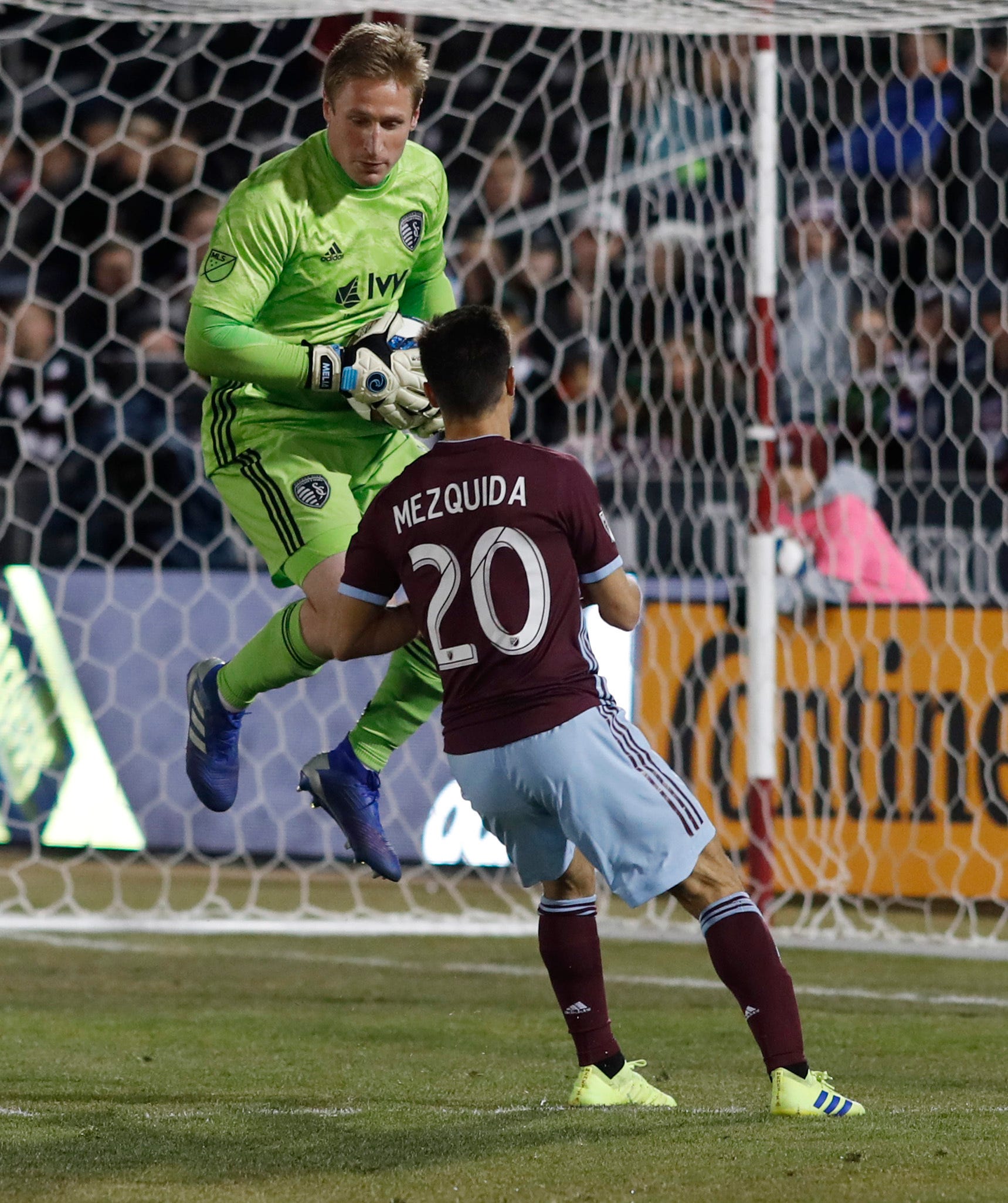 Johnny Russell scored in the closing minutes to help Sporting Kansas City tie the Colorado Rapids 1-1